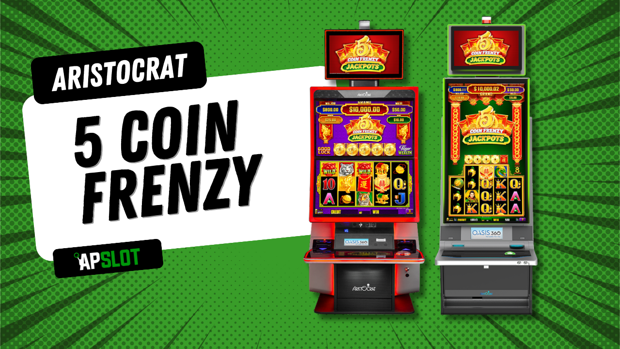 5 Coin Frenzy Jackpots is a slot machine that lets players collect coins to trigger a bonus feature.